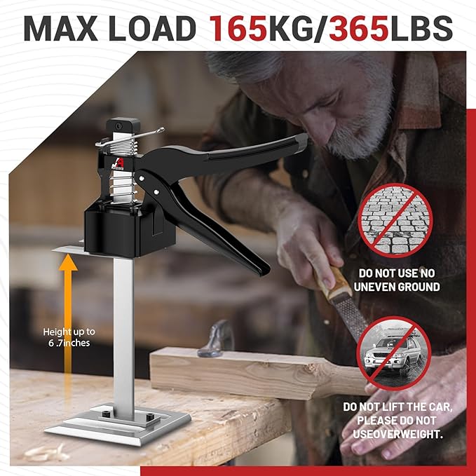 - All Steel Solid Base, Load-Bearing And Durable- Innovative lifting tool, thickened double clip solid steel bottom plate, stable center of gravity, lifting capacity of 440 pounds, and 6.7 inches of lifting capacity through handle adjustment spring. Selected high strength spring, longer service life