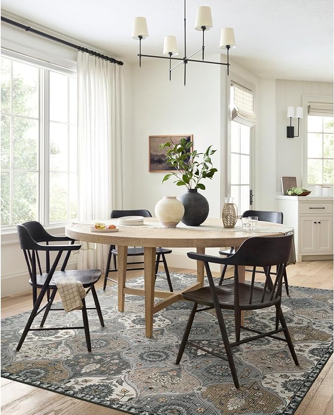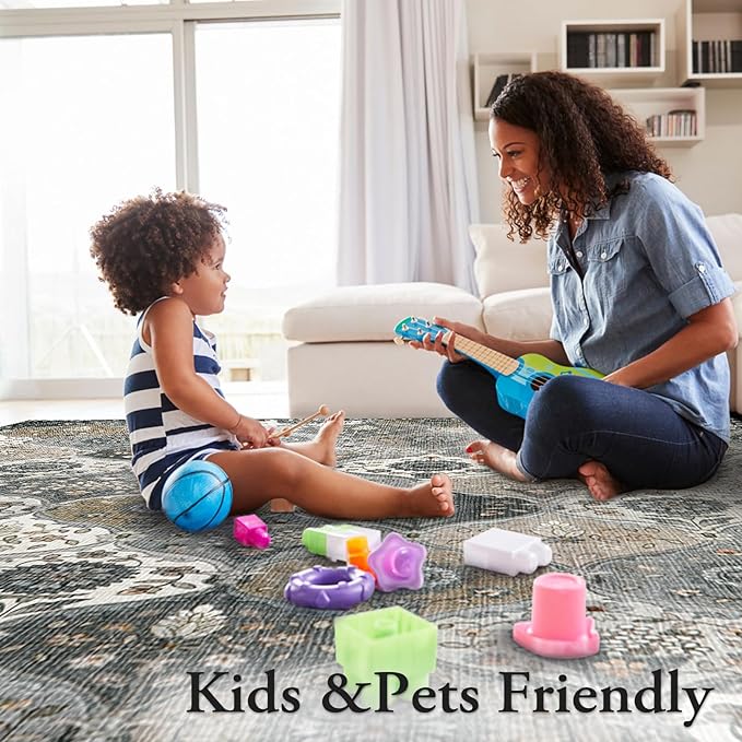 - Kid and Pet Friendly: Stain-resistant and dining room rug designed to withstand constant use and jumping from children and pets. The low-lint design can effectively prevent the accumulation of hair and dust, creating a clean environment for children