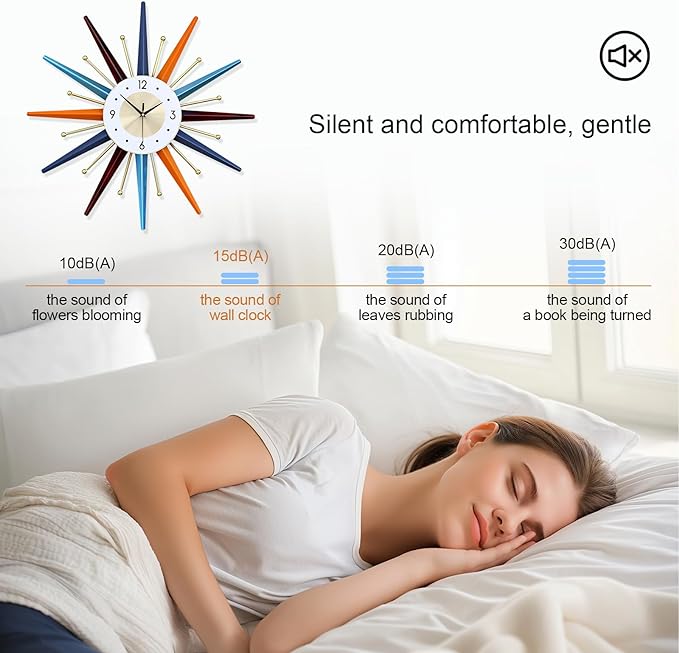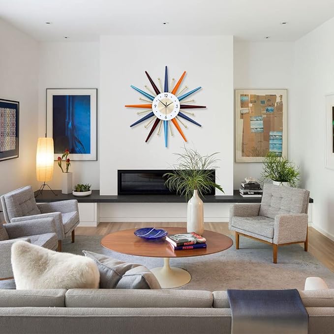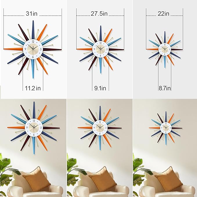 Large Wall Clock 22 Inch Modern Wall Clock Starburst Mid-Century Modern Decor