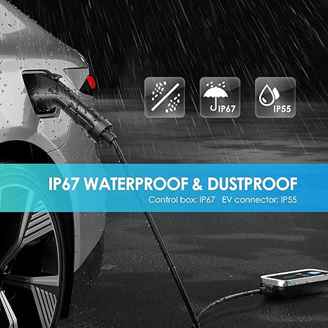 - 🚘【Safer & Reliable Charger】Say goodbye to worrying about security. This ev chargers for home level 2 is also certified as IP67 waterproof. With CE certification, FCC certification and UL safety report, a more secure and reliable charge of your electric car EV charger is guaranteed to be of high quality and safety standards.