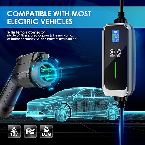 - 🚘【Safety 6x Faster Charge】EVJUICION Level 2 ev charger compatible with all EVs and PHEVs Sold in North America. With 220-240V charging, say goodbye to a slow ev charger level 2 and enjoy 6X faster charging. Designed with J1772 TYPE 1 standard connector, compatible with all America standant hybrid vehicles, including Tesla (Adaptor Needed), Ford, GM, Nissan, Audi, Kia, Honda, etc.