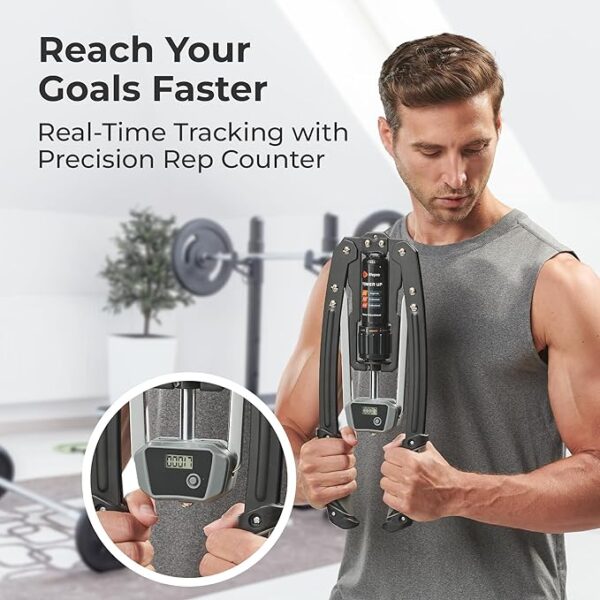 • WORK OUT SAFELY – Never worry about dangerous rebound or losing your grip on the arm strengthener & chest machine thanks to a workout-safe design, non-slip grips, & premium hydraulic mechanism.