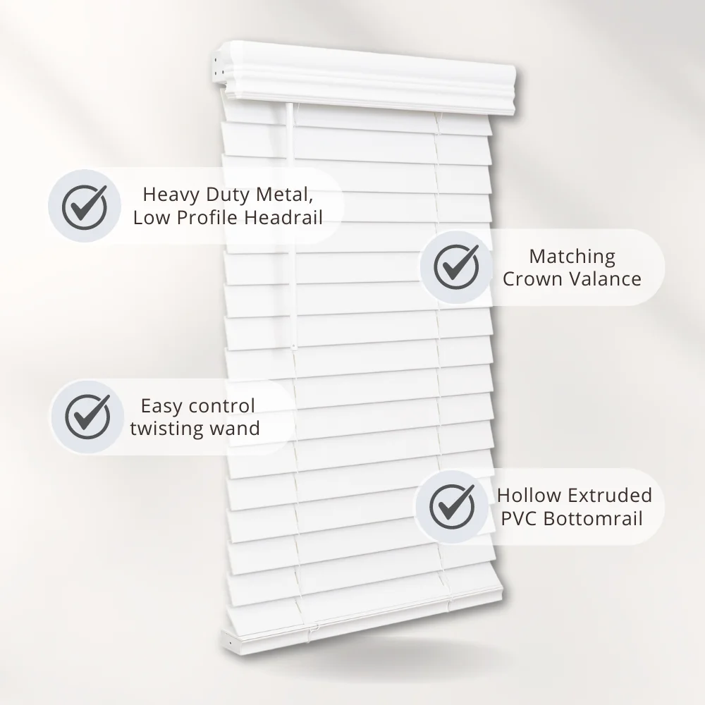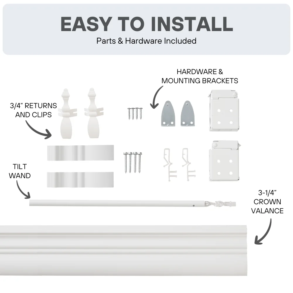 - Easy to Install & User Friendly: Faux Wood Blinds offer style and privacy, ideal for different room types such as living rooms, bedrooms, dens, and kitchens. They come complete with hardware and installation instructions for both inside and outside mounting. Each blind includes a 3 1/4″ crown valance to provide the appearance of real wood blinds.