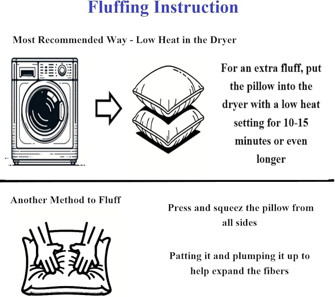 - Product packaging: Pillow inserts are compressed and vacuum sealed into plastic bags, very simple to make them fluff up, please let it wait for around 5-10 minutes, and the inserts will become fluffy and firm