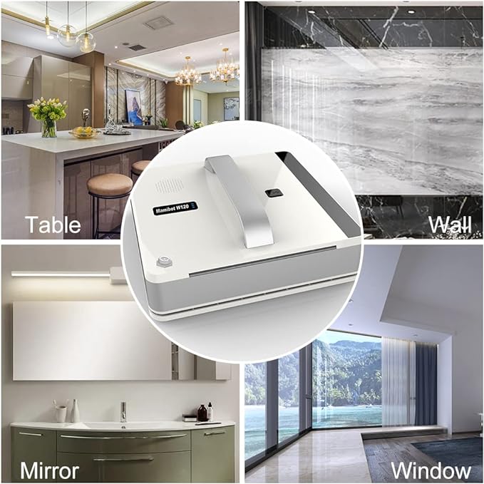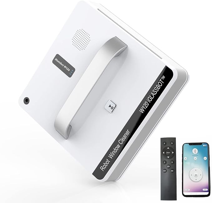 Mamibot W120 Window Cleaning Robot, Automatic Corded Window Washing Robot, Glass Cleaning Robot with iGLASSBOT APP/Remote Control, Wet or Dry Use, Suitable for Indoor/Outdoor/Tile/Bathroom, White ***PLEASE SEE DESCRIPTION***