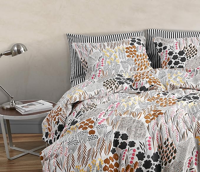 MARIMEKKO – King Comforter Set, Cotton Percale Bedding with Matching Shams, Stylish Modern Home Decor (Pieni Letto Multi, King)