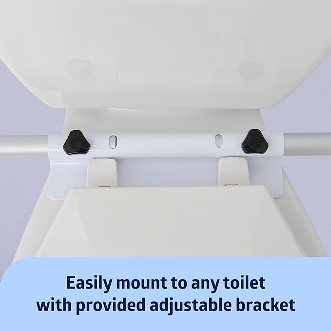 - Toilet safety frame adjusts in height from 26 to 31 inches to accommodate standard or elevated toilet seats | Tool free assembly
