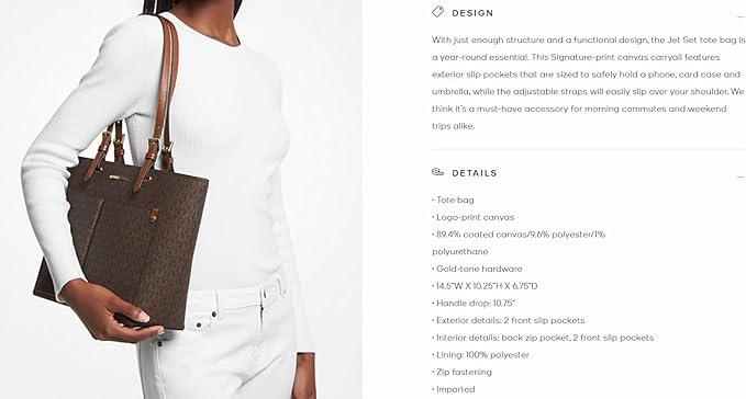 - Leather or signature print canvas, Gold-tone hardware, polyester lining