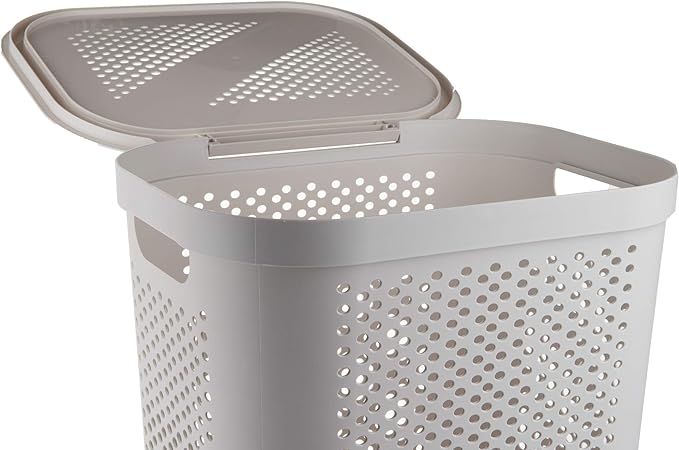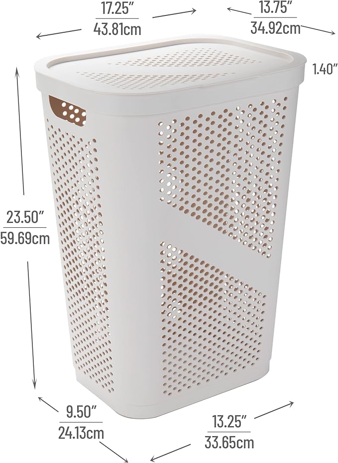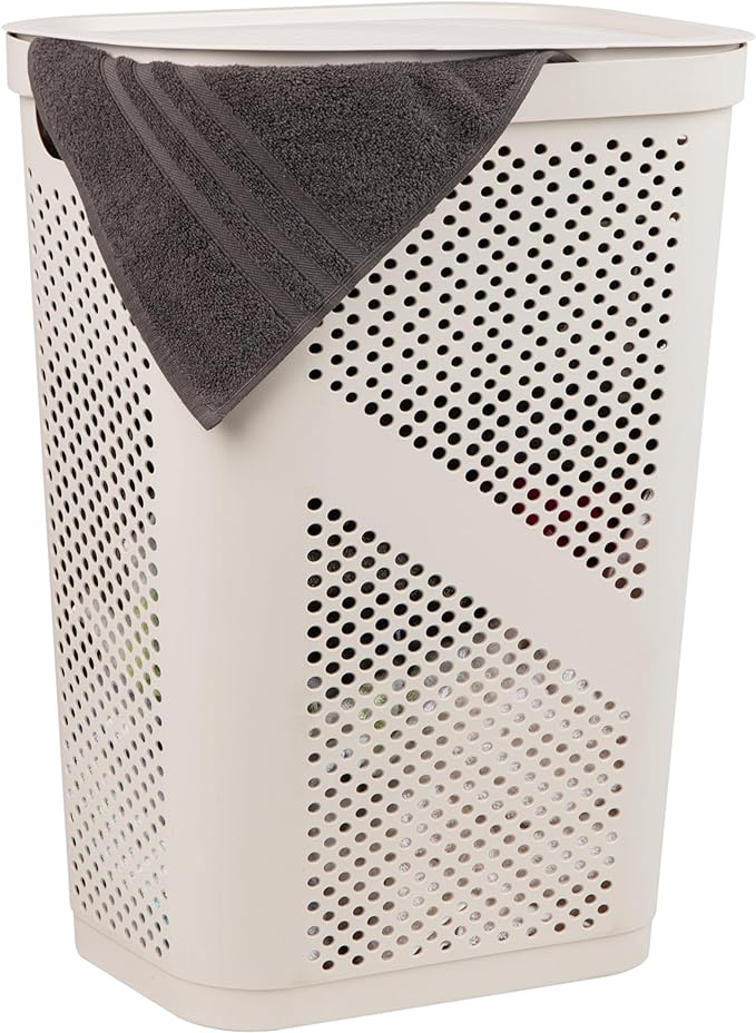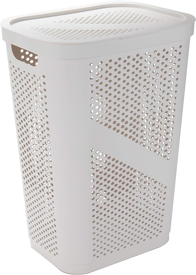 Mind Reader 60L Slim Laundry Hamper, Clothes Basket, Lid, Ventilated, Plastic, Ivory