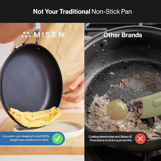 - Tough and Lasting: These pans don’t give up. The special coating keeps them nonstick for ages. Misen’s pans make you a kitchen pro.
