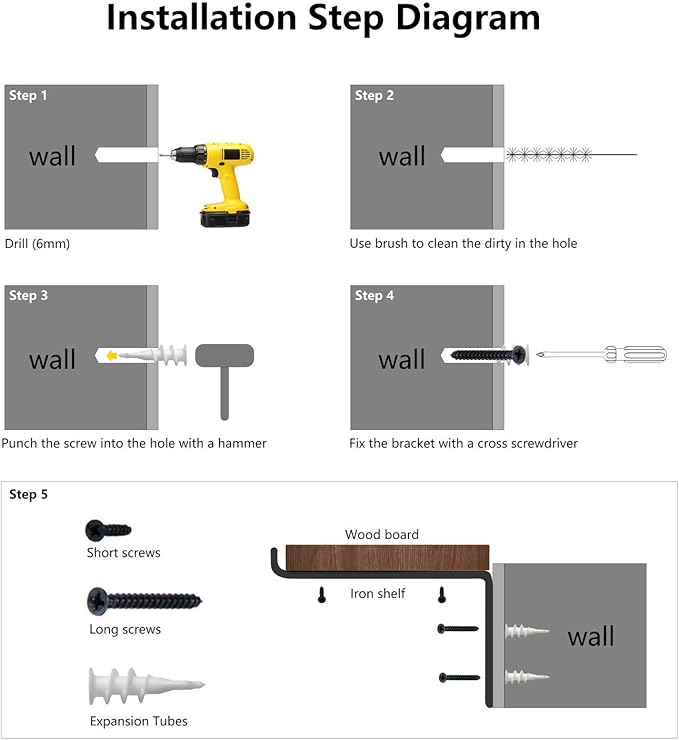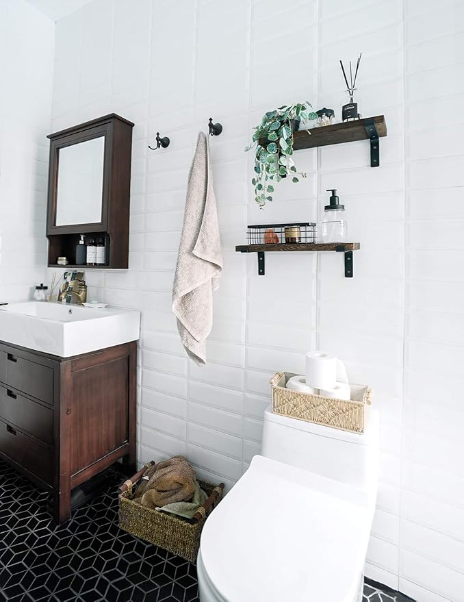 - Easy to install with all necessary hardware included. Measure size: wood board- 23.6″ x 5.9″x 1″;brackets-4″(H) x 6″(L);Package included: wood board x 2,brackets x 4