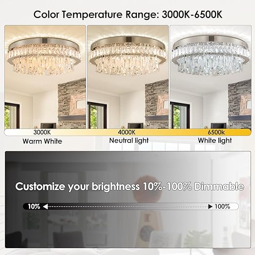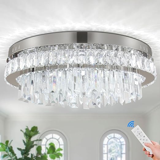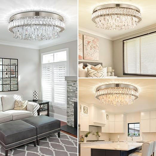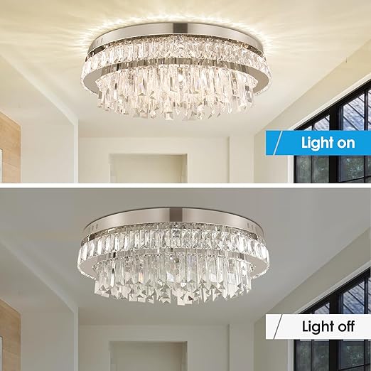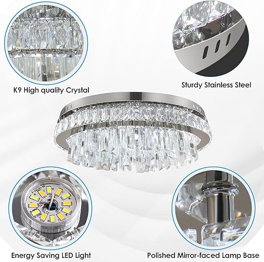 - 【Flush Mount Ceiling Lights】K9 Crystal & Polished Stainless Steel. Modern crystal chandelier lighting, flush mount LED chrome ceiling light fixtures.
