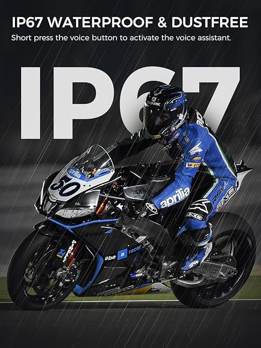 - 【IP67 Waterproof & Dustfree】Moman H1 intercom system is highly adaptable to various weather conditions, with IP67 waterproof and dustfree. Perfect for most open face, modular and full-face helmets, it is built to withstand tough conditions like dust,rain,storm,snow and low temperature.Ideal choice for motorcycle and snowmobile riders.