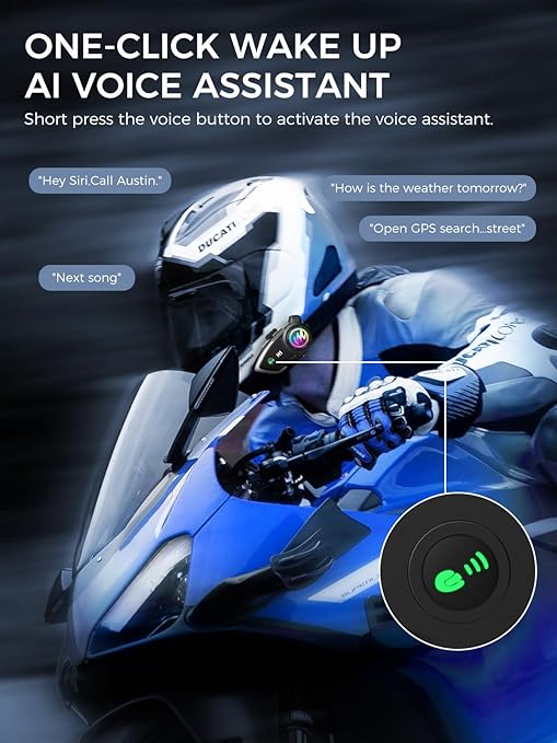 - 【Technology Wireless 5.0 & AI voice assistant】Moman H1 motorcycle headset adopts Wireless 5.0 technology,which effectively reduces disconnection and noise caused by interference in the 2.4GHz frequency band.With a simple one-click button,access the AI voice assistant,open apps and answer calls,making your ride more convenient and exciting.