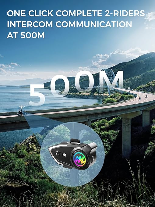 - 【2-Riders full duplex intercom at 500M】Experience seamless communication while riding your motorcycle with the Moman H1 helmet intercom kit. Enjoy real-time conversations with your ride buddy up to 500 meters away,without the need for shouting. Share your passion for motorcycle travel, skiing, and other activities with ease.