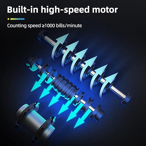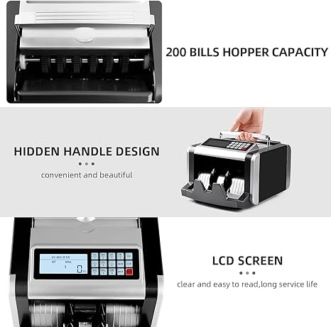 - 【200 bills,1000/m】The capacity of the hopper and stacker is 200 bills. Built-in high-speed motor contributes to counting speed ≥1000 bills/minute. The widened impeller avoid money jamming or flying. Counting is smooth and error-free.