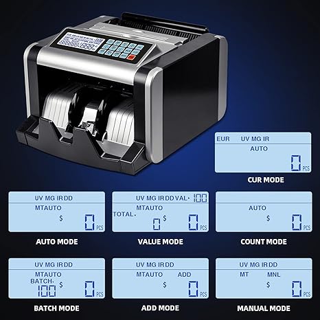 - 【7 Counting Modes to Choose】Common modes such as add, count and batch, etc.,are more convenient and quick to count money. In add mode, the machine can add multiple batches together to give you a total amount of bills; In batch mode, Set the machine to count bills in a batch of your choice. Automatic and manual mode of this money counter can be switch freely.