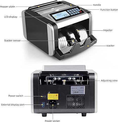 - 【LCD Display】money counter equipped with the latest LCD display technology has much more high-definition. Changing the operation mode and reading the amount of money are accurate and convenient. The external display provides dual views, suitable for churches, supermarkets, banks, hotels and businesses.