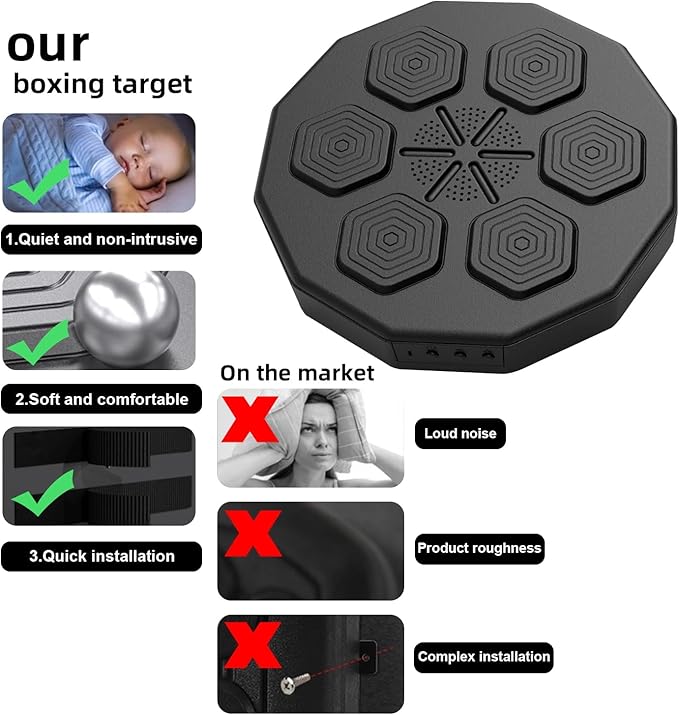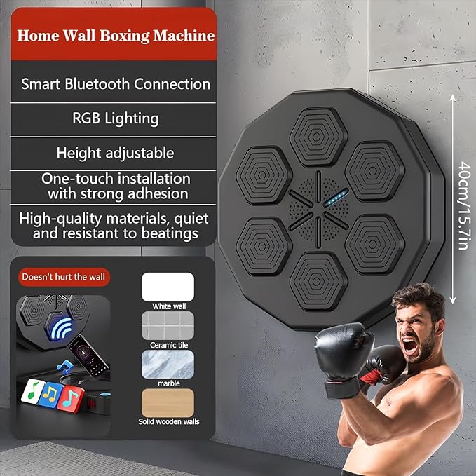 - Easy installation:This space-saving smart music boxing machine is designed for wall mounting, allowing you to workout anywhere, suitable for all types of walls. The boxing training equipment offers both sticker mounting and screw hole mounting for flexibility to meet different needs