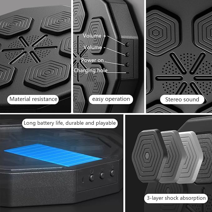 - Bluetooth connectivity:The boxing machine is equipped with built-in speakers, you can easily connect your device via Bluetooth to play your favorite music during boxing training, add dynamic rhythm to your daily training and improve your training results.