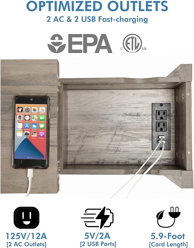 - 【End Table with Charging Station】The built-in charging station includes 2 standard outlets and 2 USB ports that can easily charge your phone, tablet, and even your laptop. 5.9 FT long power supply cord allows you to move this end table freely. No need to look around it’s within your arm’s reach. this couch table makes it no mess chargers and cords hanging outside. Half circle openings on the side, the practical couch table would help charge your essentials within reach of the sofa.