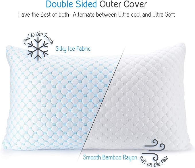 - Cooling Pillow Cover: Cool to the touch and breathable, our reversible queen size pillows features silky ice fabric on one side and soft bamboo rayon on the other. The pillow cover is removable and machine washable.