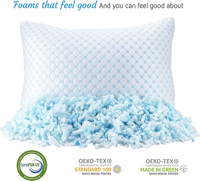 - Memory Foam Pillows: The shredded memory foam in our bed pillow cradles your head and neck, supporting better sleep in any position. Our queen pillows are made with new, clean foam, certified by CertiPUR-US.