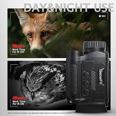 - 🏹4K Newly Upgrade & Cost-effective——GeowFiiTech M1 Night Vision Monocular has been upgraded to be 4K version with our lab-developed 25mm multi-coated lens, which offers qualitatively improved imaging and more possibilities for day and night use. With 4K videos, 40MP photo configures and other practical functions, Night Vision Monocular is cost-effective to meet most of your needs outdoors.