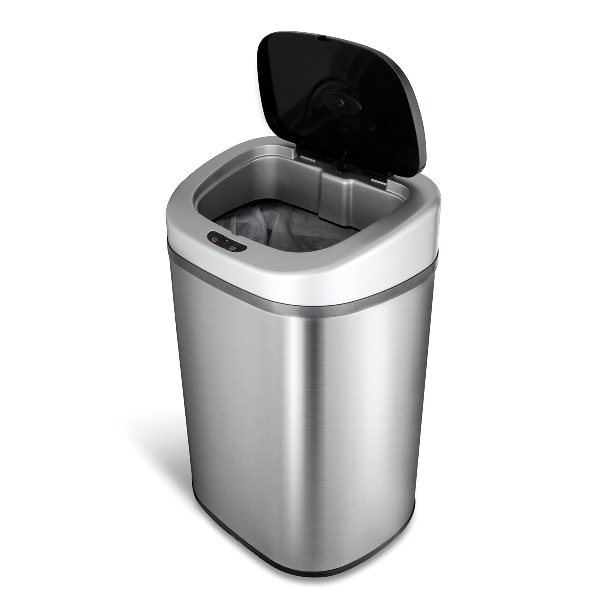 Enhance your kitchen with convenience and contemporary style with the Nine Stars touchless trash can. What sets the stainless steel trash can apart from other models is the convenient sensor operation feature that allows the lid to automatically open as soon as you get near the can, eliminating the need to manually operate the can with your hand or foot. Soft-close technology prevents the lid from slamming shut, a battery-operated design delivers an average of 10,000 open and closes for a full year of typical kitchen use. The motion sensor trash can’s included ring liner keeps trash bags upright while concealing them from view. The stainless steel build is fingerprint-resistant for a clean look, and a non-skid base keeps it stable. Batteries are sold separately.