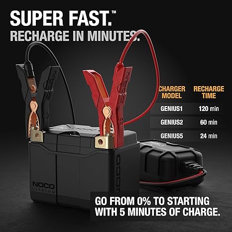 • Superfast Charging – Unleash the power of lithium and quickly recharge within minutes. Utilizing the most advanced rapid-charge technology, it provides enough starting power with just 5-minutes of charge.