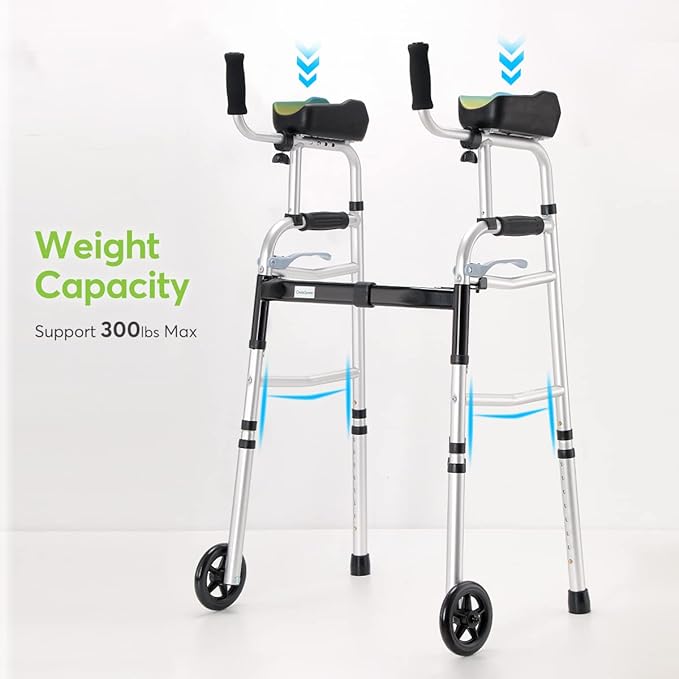- 【Premium Quality & Durable Structure】Made of thick aluminum alloy with anti-rust finish, OasisSpace folding walker supports up to 300lbs. The H-shaped design improves its stability and makes it perfect for assisting with ambulation and improving gait.