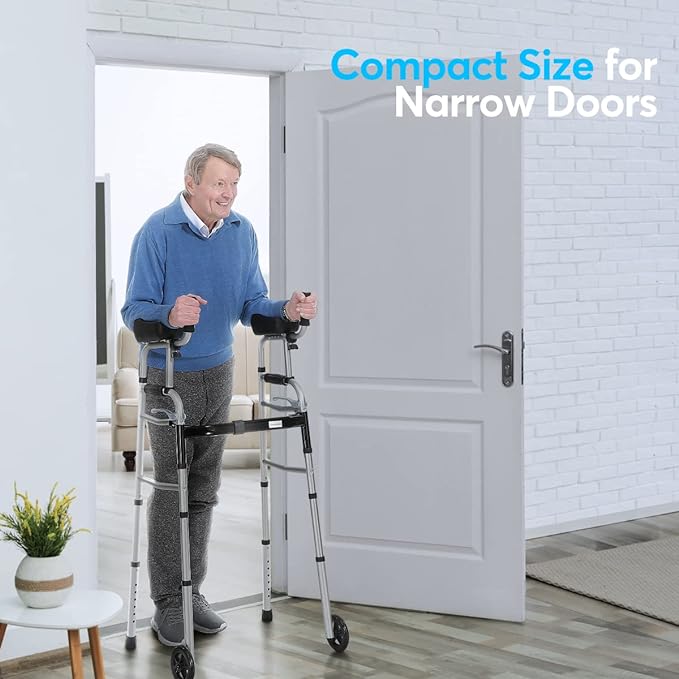 OasisSpace Folding Walker – Standard Walker with 5’’ Wheels and Removable Padded Armrests 300lbs, Platform Walker with Arm Support for Senior, Handicap & Disabled ***PLEASE READ DESCRIPTION***