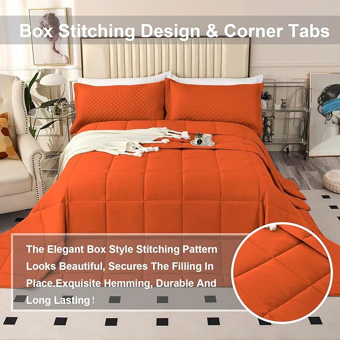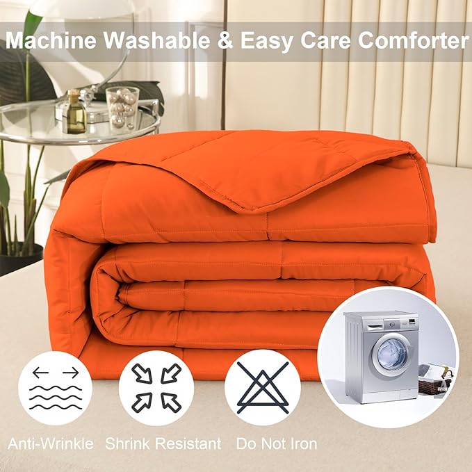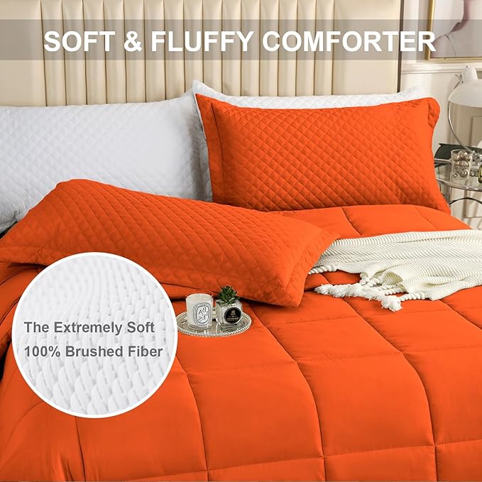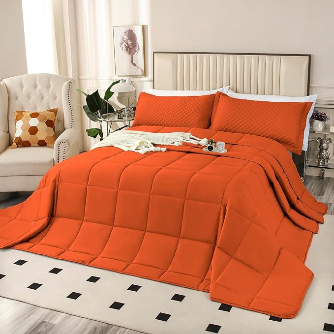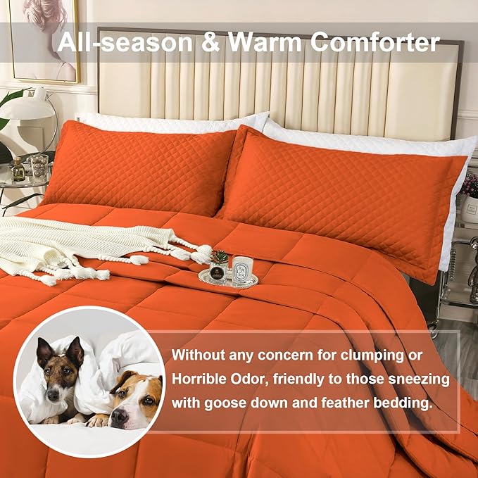 - 【Fall Goes Well with Burnt Orange Comforter】Down alternative comforter with skin-friendly cover and warm filling can meet your needs. Simple but elegant design, fits various type of decoration, adding more beauty and coziness to your bedroom