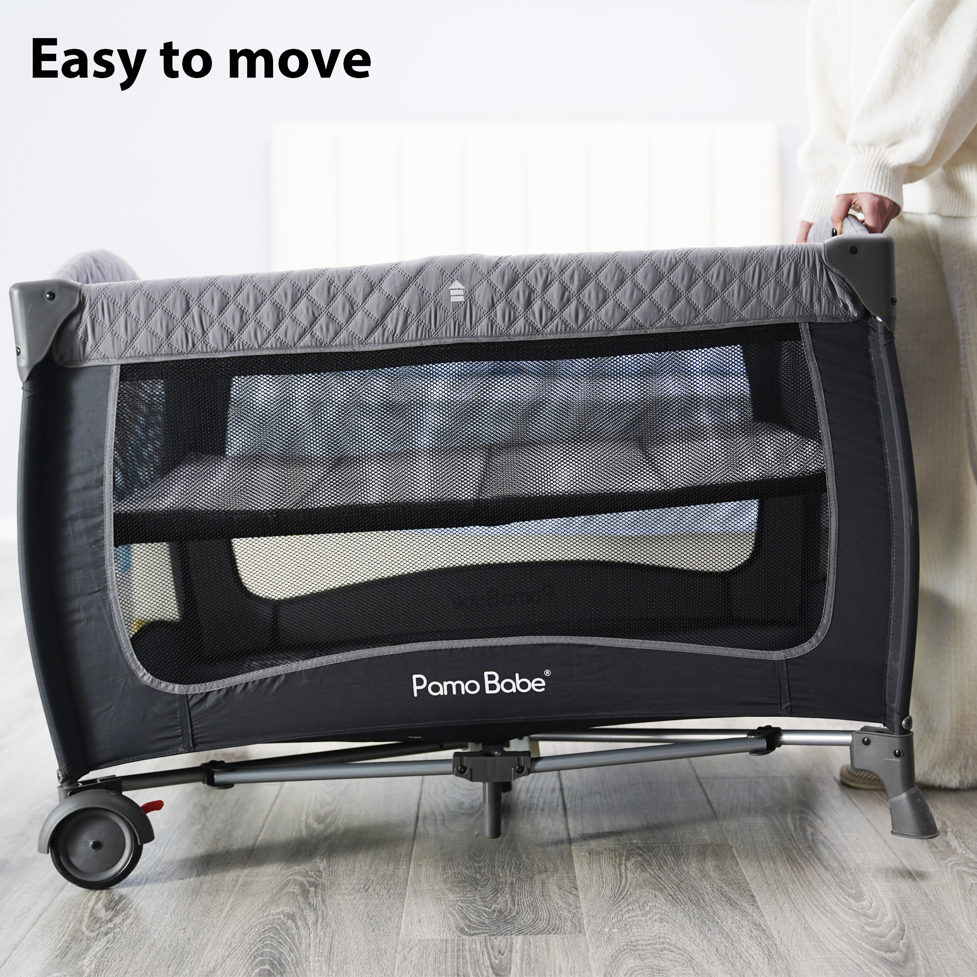 - 【EASY TO ASSEMBLE】Easy to put the playard together without any tools. The mesh design provides a better visibility for parents to observe the baby at any time. The wide space allows the baby to practice standing and playing after removing the bassinet.