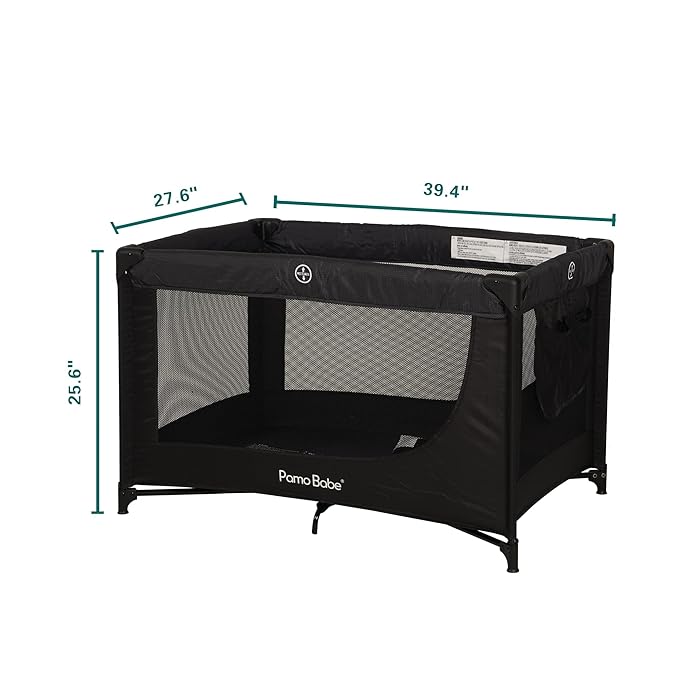 Pamo Babe Portable Crib Baby Playpen with Mattress and Carry Bag (Black)