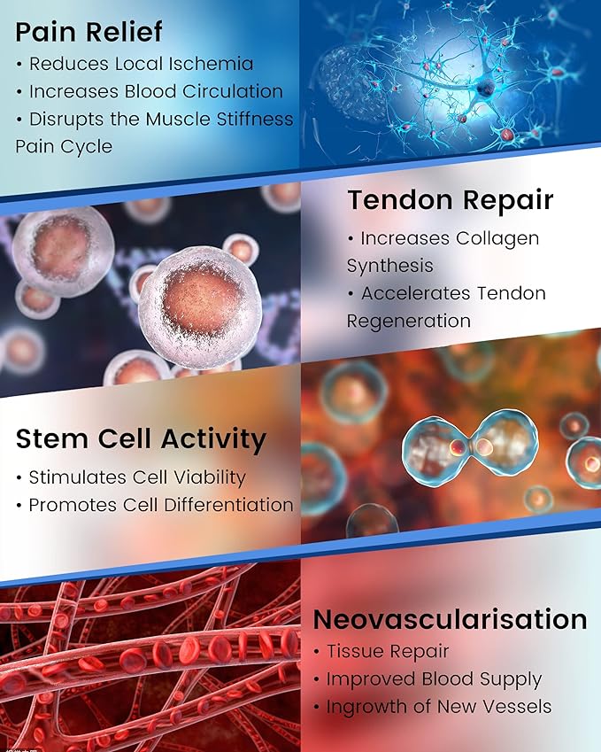 - FAST RECOVERY: Non-invasive and safe method with shock waves to treat various musculoskeletal conditions. Self-healing and body repair with low-intensity acoustic shock waves for improving blood flow. No post-surgical healing time required.
