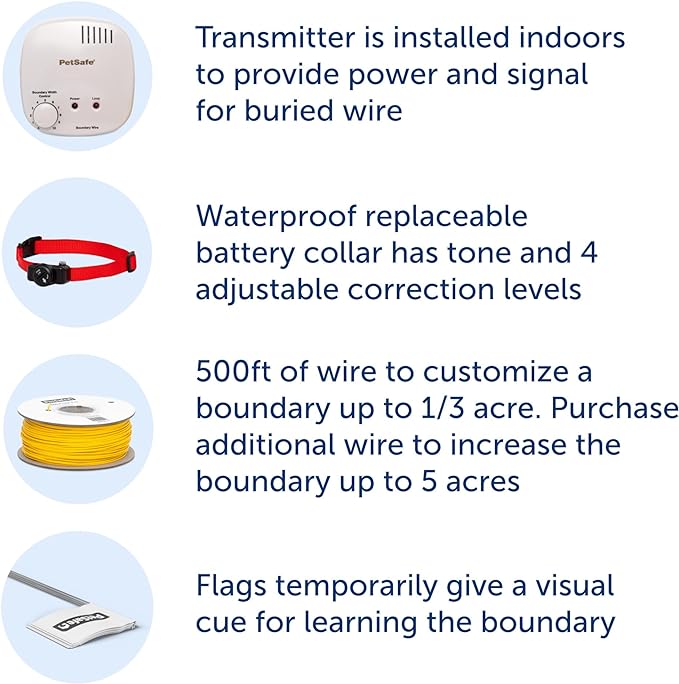 - SECURE A 1/3 ACRE YARD: Create a safe 1/3-acre play area for your best friend with the included 500 ft of wire; purchase additional wire to fence in up to 5 acres