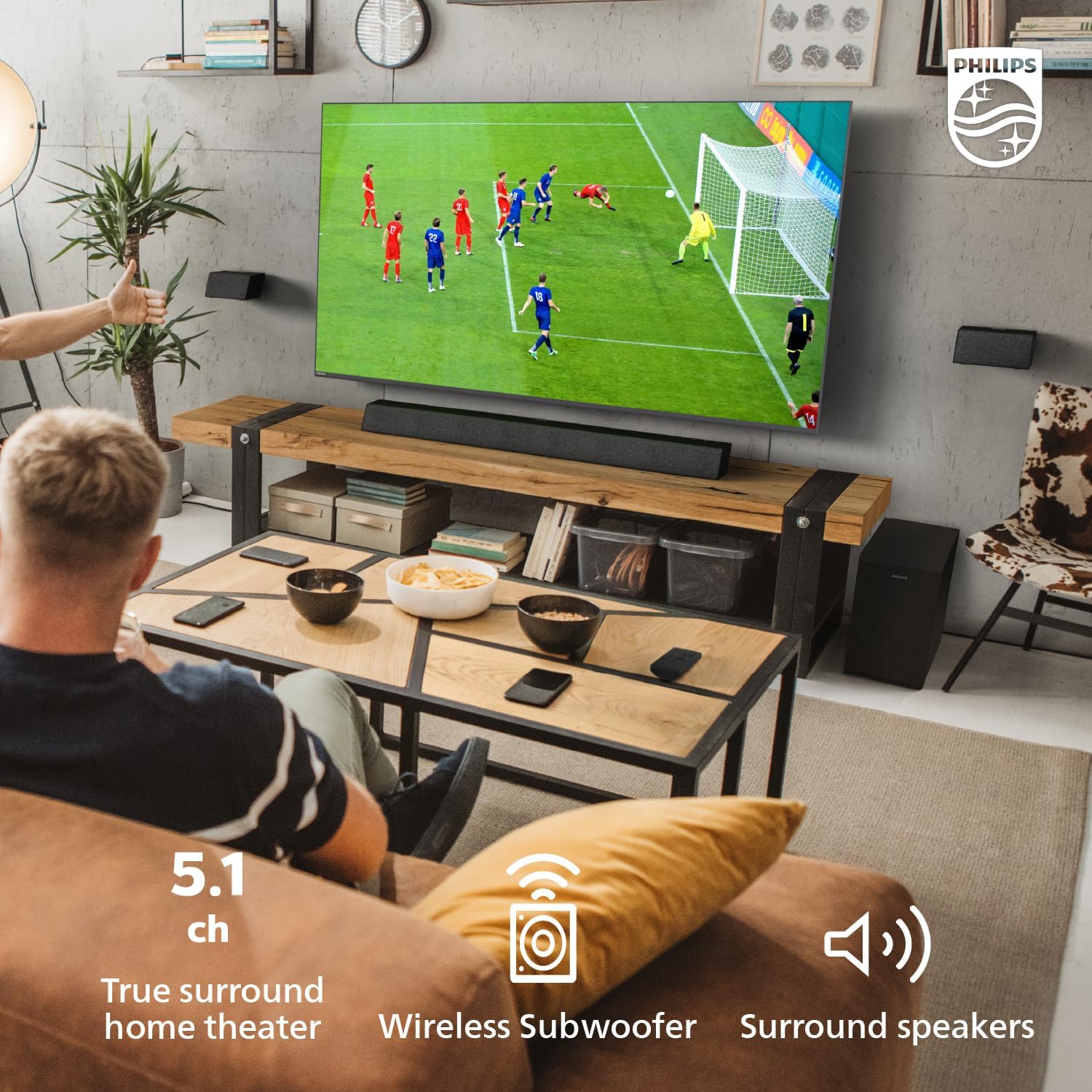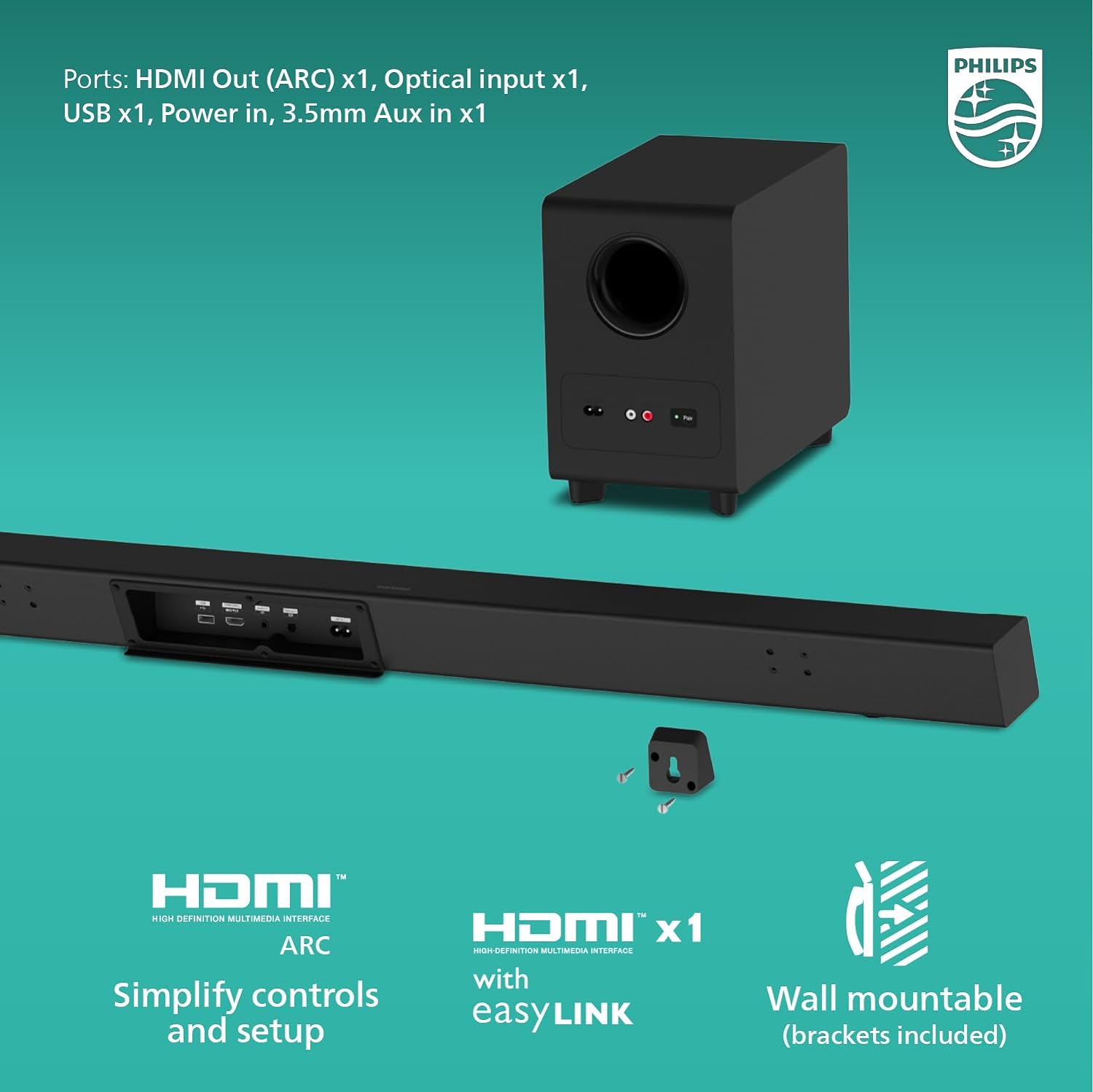 Philips B7568 5.1 Channel Soundbar w Wireless Subwoofer & Wired Surround Speakers ***PLEASE SEE PRODUCT DESCRIPTION***