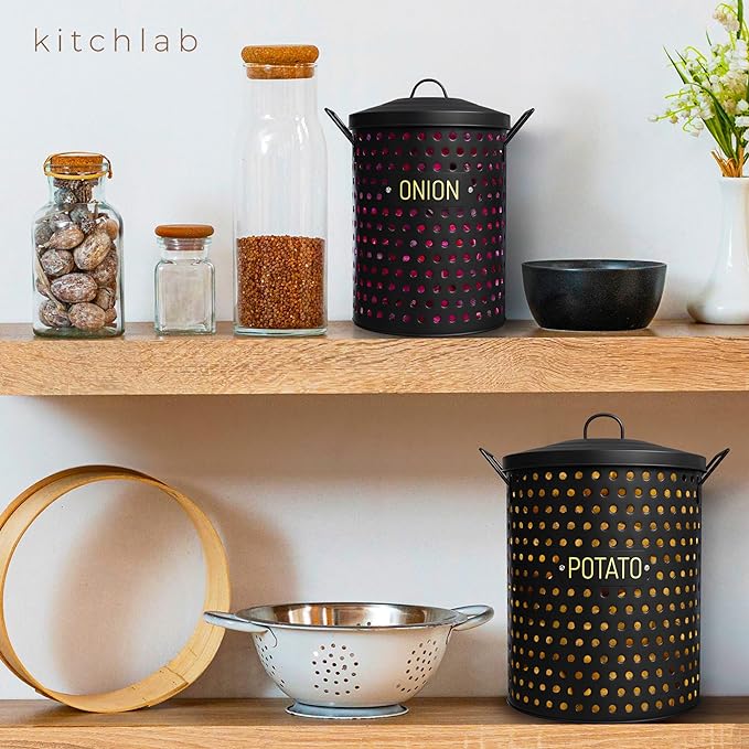 - ELEVATE YOUR KITCHEN ORGANIZATION with the Kitchlab Onion and Potato Storage Bins. This kitchen storage set is made from premium galvanized iron that ensures long-lasting and reliable bins for potatoes and onions for years to come