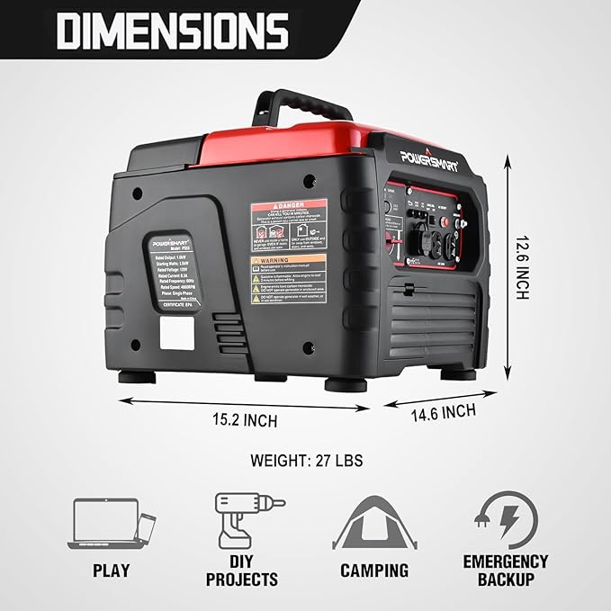 PowerSmart 1500-Watt Gas Powered Portable Inverter Generator with Recoil Start and Quiet Technology, Ultra-Light Small Generator for Camping Outdoor, CARB Compliant