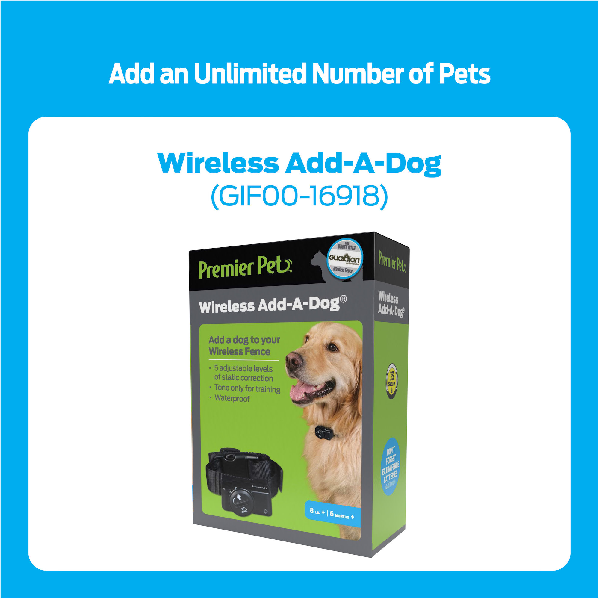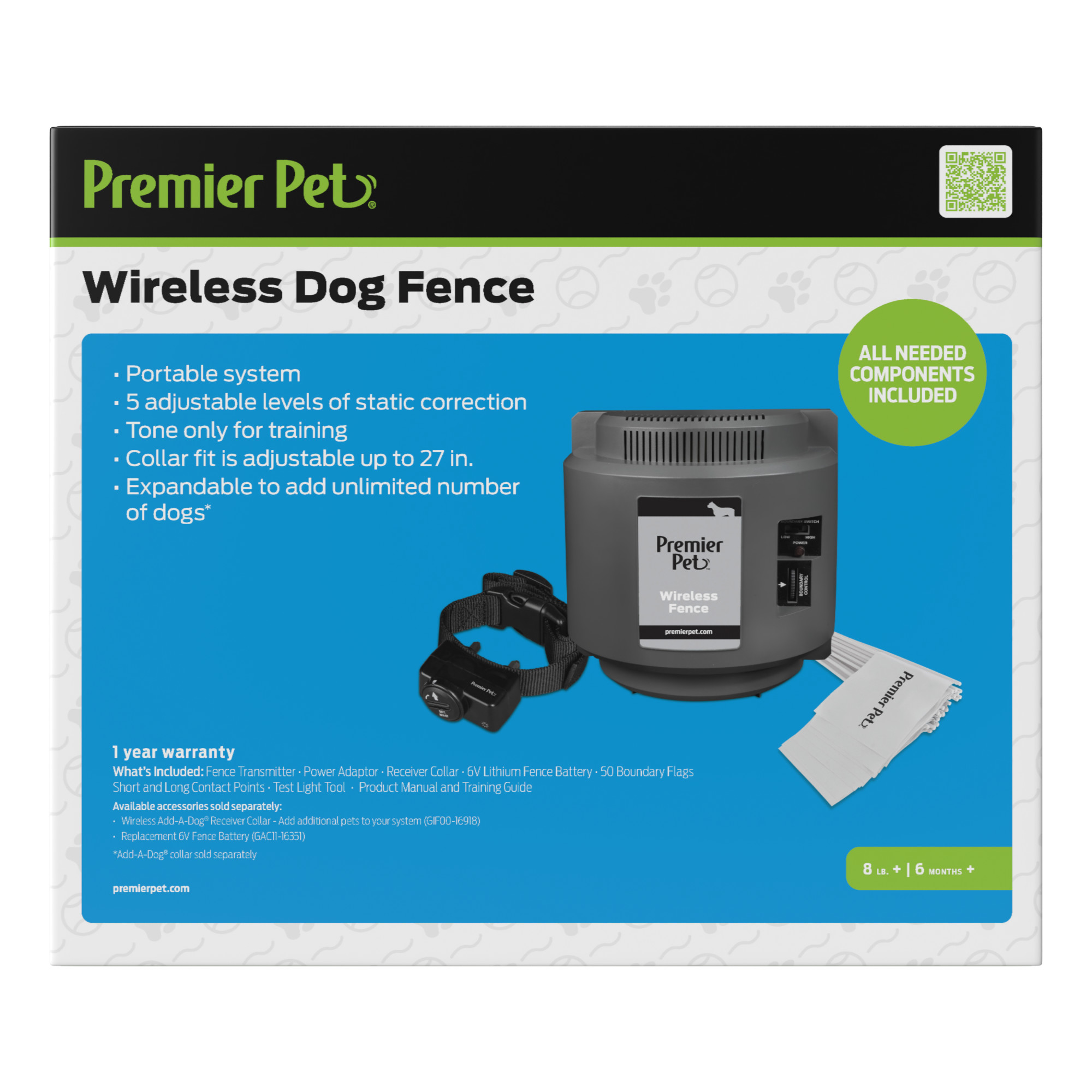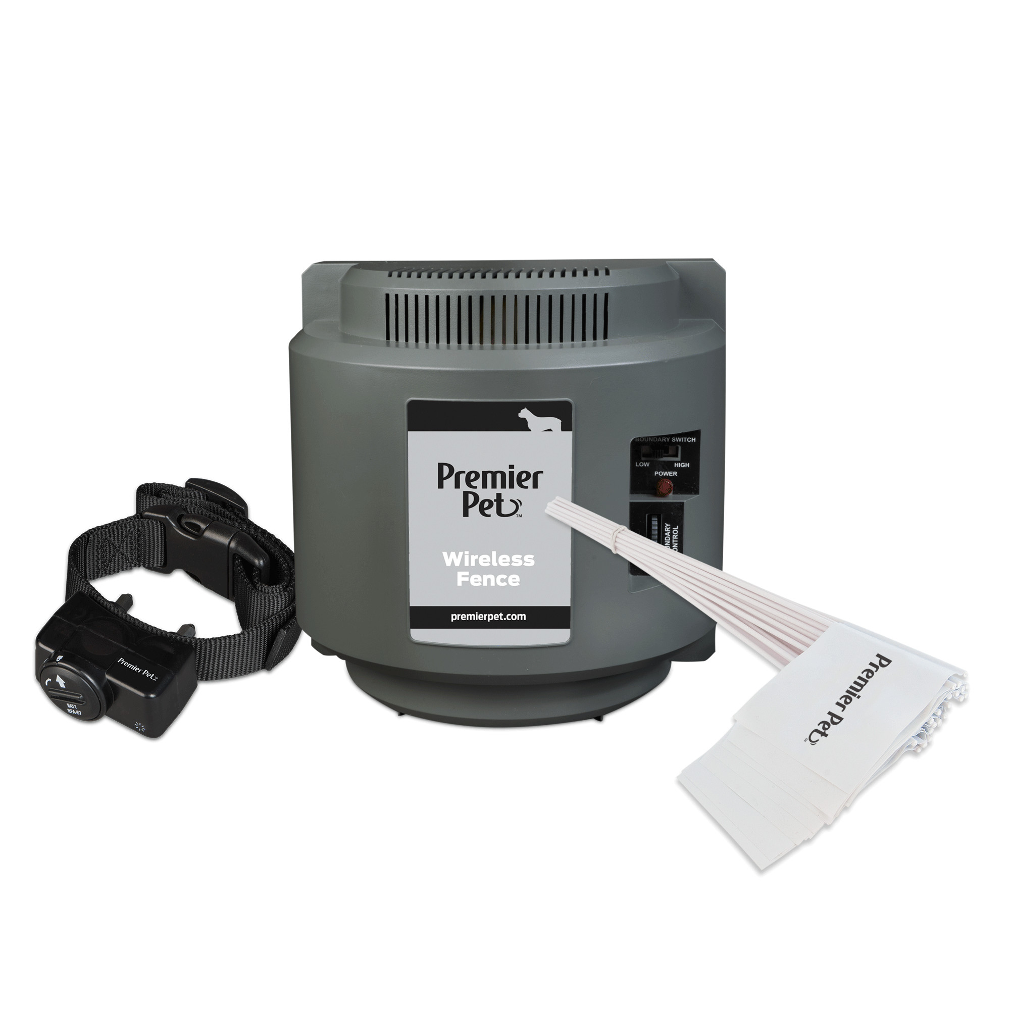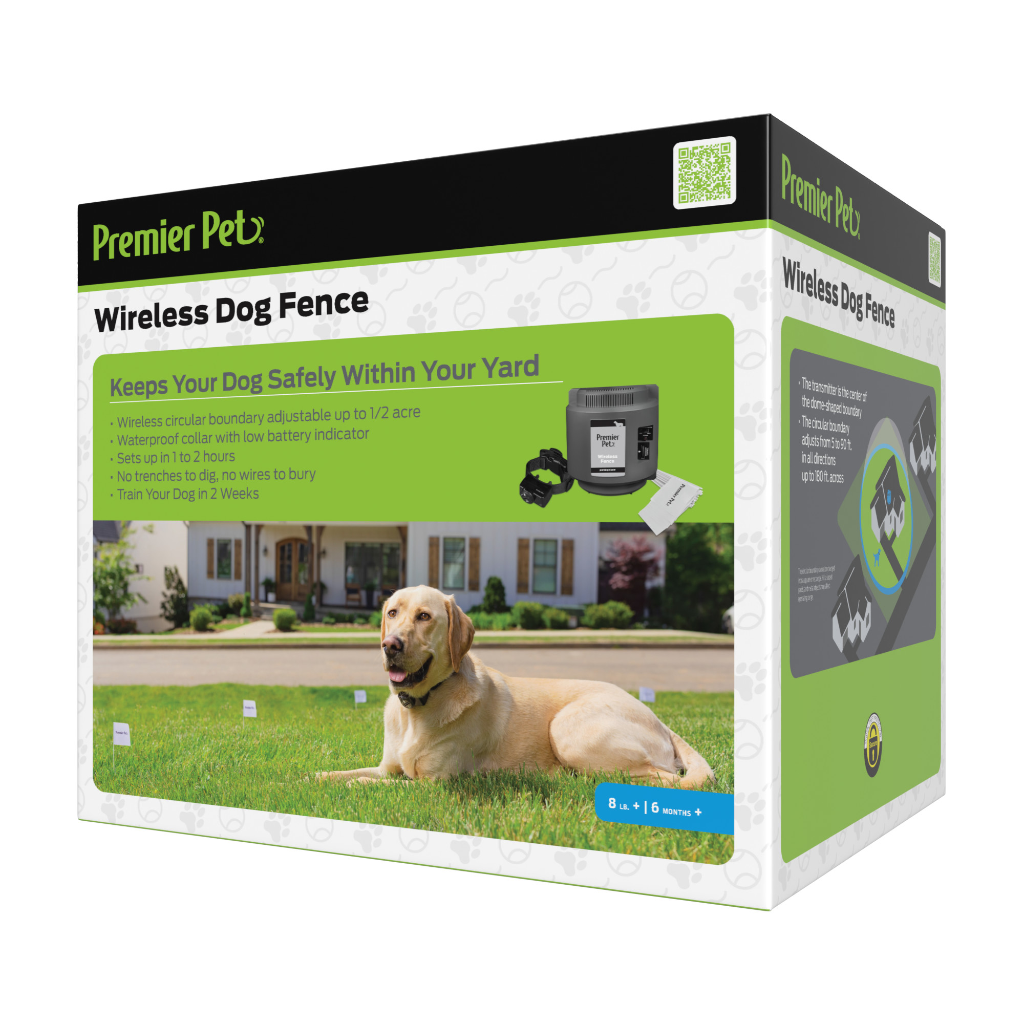 Premier Pet Wireless Fence for Dogs: .5 Acre Adjustable Circular Barrier, Wire-Free Electric Fence, Waterproof Collar, Tone & Static Correction, Portable, Expandable-Add Pets & Coverage Area