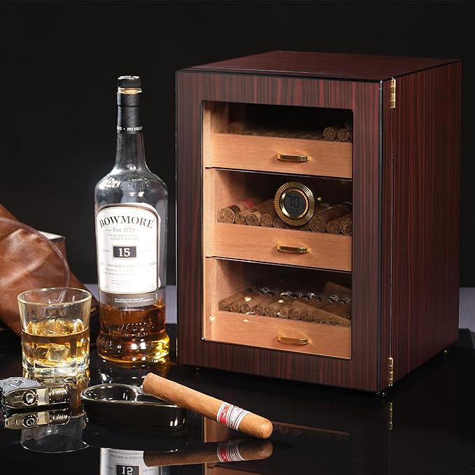 - PLENTY OF CAPACITY – PrimeZone cigar humidor with 3 drawers has a large capacity of up to 150 cigars. Storage capacity depends on the ring gauge and size of your cigars. If you prefer cigars with a ring gauge greater than 48, this cigar humidor will be the perfect storage solution