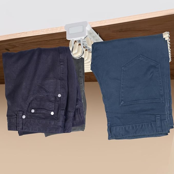 - 【Quiet Damping】: Jeans hanger’s double-row three-section damping makes it easier to slide with less noise, giving you a comfortable and peaceful environment.