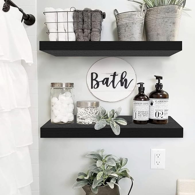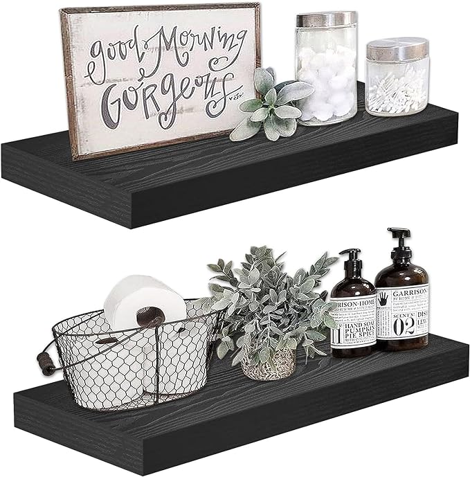 QEEIG Wall Shelf 24 x 9 inch Set of 2, Black