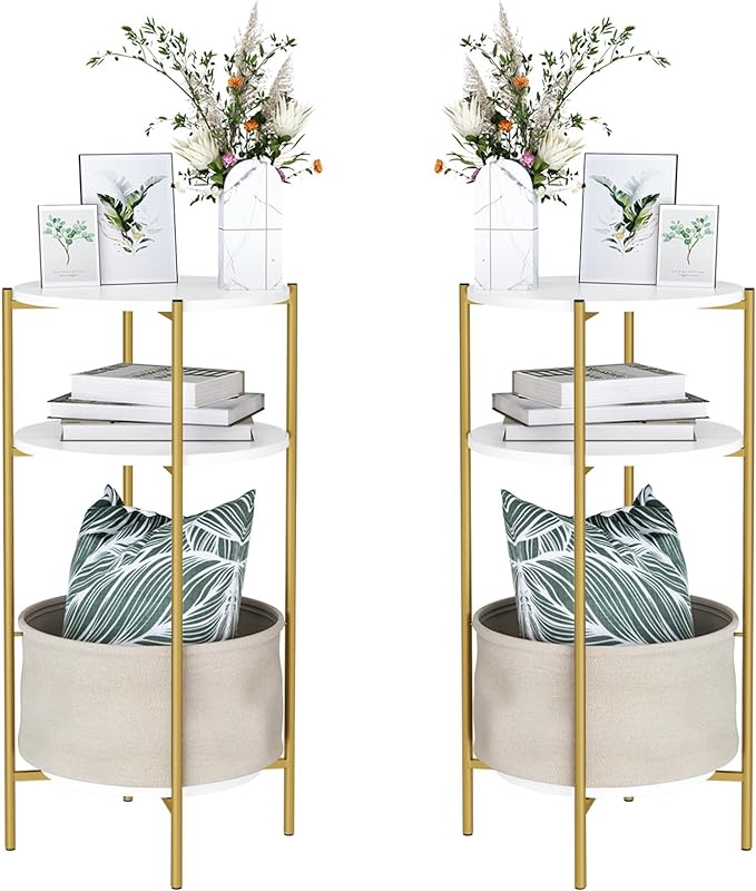 - 【3-TIER ROUND SIDE TABLE】 Composed of durable white particle board and solid metal frame, the bottom is crisscross, they make white gold side table has a touch of modern and elegant.