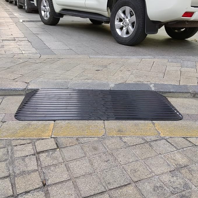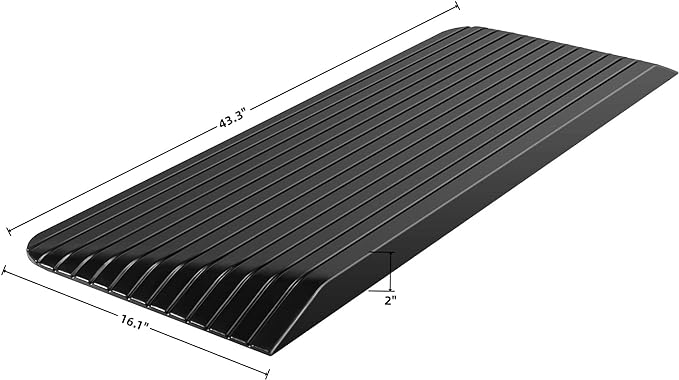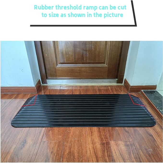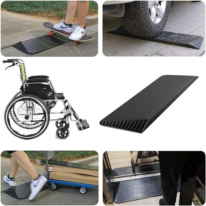 - Design: The surface of the rubber wheelchair ramp is wired with grooves to improve the frictional force. The bottom is a grid design, that fit to the ground and does not slide.