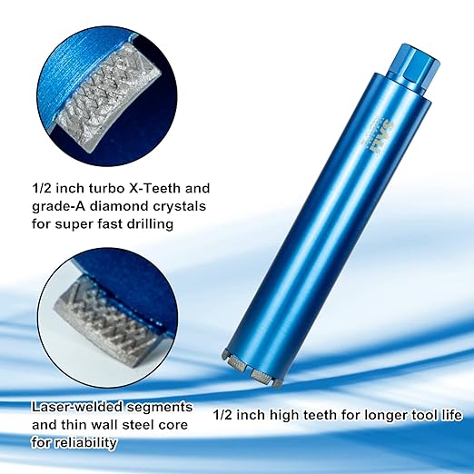- Efficient & Smooth Drilling: This diamond core drill comprises premium aluminum alloy components, and high-quality diamond grits ensure longer coring liferecommended to use with handheld core drills or dedicated core drill rigs.