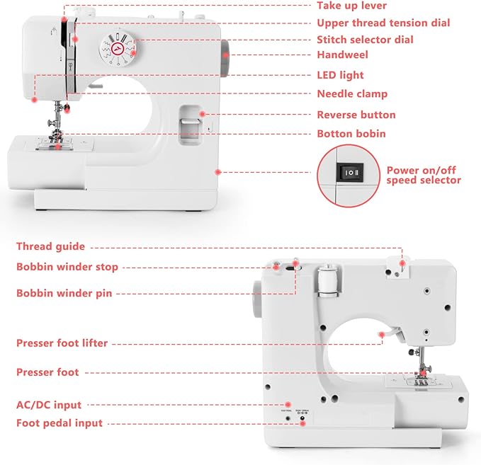 • ⭕【100% Satisfaction Guarantee】12 months quality guarantee. If you have any questions, please feel free to contact us, we will solve it for you within 24 hours. Special Note: Please read the instructions carefully after receiving the goods. The guide includes an introduction to the sewing machine, how to use it, and how to deal with errors. The included sewing accessories kit contains all the tools you need~