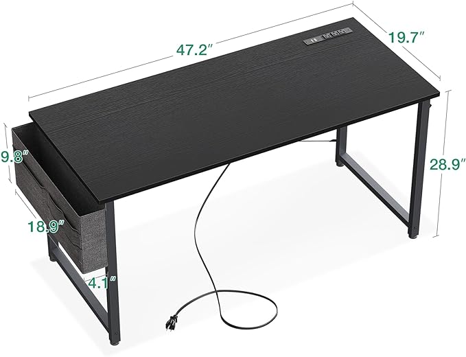 Small Desk with Power Outlets and USB Port 48 inch, Black