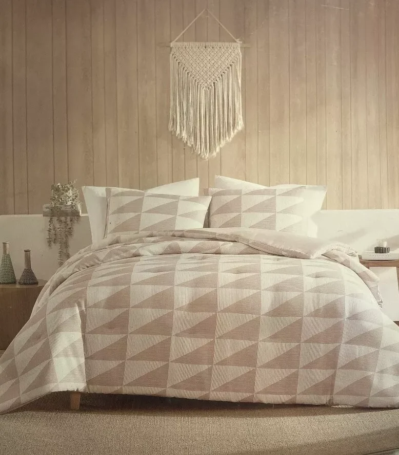Showcasing the newest addition to the home assortment, the Social Standard by Sanctuary Geometric Comforter Set. It is a contemporary-styled comforter set featuring a graphic geometric print named the Leroy Geo. It is a pattern that makes a statement while keeping its simplicity, allowing duality in styling. The geometric pattern is printed on a soft, lightly textured slub microfiber fabric to mimic the appearance of linen, a great way to get the look without the price tag. Available in a variety of on-trend, soft, muted tones it can be easily incorporated into your current bedding decor or be the centerpiece for a whole new look. Three of the hues, Neutral, Gray, and Blush, can be found in-club while an additional two, Gray Dawn and Sage, can be found online. The Social Standard by Sanctuary Geometric Comforter Set is filled with a lofty down-alternative fiber, giving you lightweight all-season warmth, perfect for all-year-round use. It is also great for those with sensitivities to down, allowing them to enjoy a cozy warmth without sacrificing style. All-over bar-tacks evenly distribute and keep the filling in place; especially when this comforter is machine washable and designed to be used and enjoyed with ease. Matching pillow shams complete the look, letting you express your style effortlessly. Take no time to spruce up your sanctuary with the Social Standard by Sanctuary Geometric Comforter Set. Made to be hassle-free to match your style while making your space a place to lay back and relax after a long day. 100% polyester Luxuriously soft Lightly textured fabric to mimic linen Down-alternative all-season warmth.